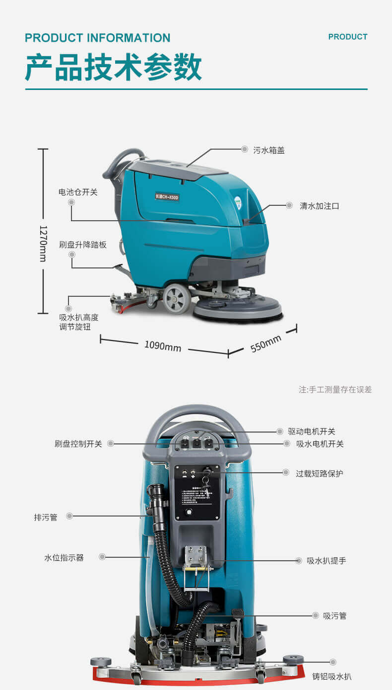 用途:自驅式洗地機,無需用力自動行走,省時省力低噪音,適用于醫院、學校、商超、超市、工廠等場所的硬地面清潔,機器有水質三重過濾系統,可以避免堵塞。洗擦、吸干一次性完成。