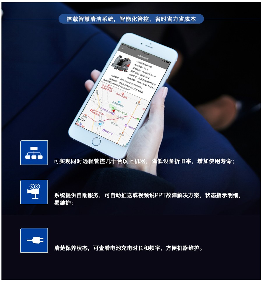 用途:S160智慧型洗地車,智慧機(jī)型,效率典范,中大面積場所的適配機(jī)型。適用于所有硬地面清潔,每小時(shí)工作效率6800平方米,快速清潔,提高工作效率。
